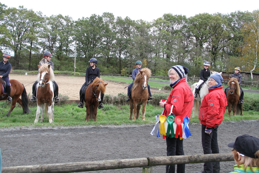 Richter war Kóki Olason, der mit höchster Konzentration dabei war, und seine Bewertungen anschaulich und sehr motivierend über Mikrofon erklärte. Er wurde sogleich für das Firmakeppni im nächsten Frühjahr engagiert. Insgesamt: prima Stimmung, viele gute Ritte und fröhliche Reiter, dazu kühles trockenes Oktoberwetter, was will man mehr? Vielen Dank von uns an alle Helfer, ohne die eine Veranstaltung wie diese nicht zu machen wäre!!!