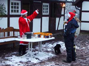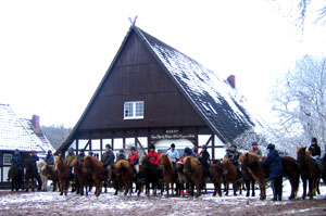 machte den zwei- und vierbeinigen Teilnehmern bei herrlichem Winterwetter viel Spaß. Man beachte die superordentliche Formation der 37 Reiter! Vor dem Ritt: Lösen und Aufwärmen mit Marlises berühmtem Eierpunsch ("auf keinem Weihnachtmarkt schmeckt er auch nur annähernd so gut..." ), anschließend gemütliches Keks-Wettessen (nur Selbstgebackenes wird akzeptiert) Fotos: © by Stefan Stahnke |